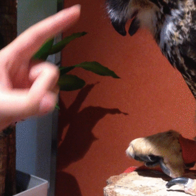 アメリカワシミミズクの「雅」は、ワイルドなお手をしてきます😈