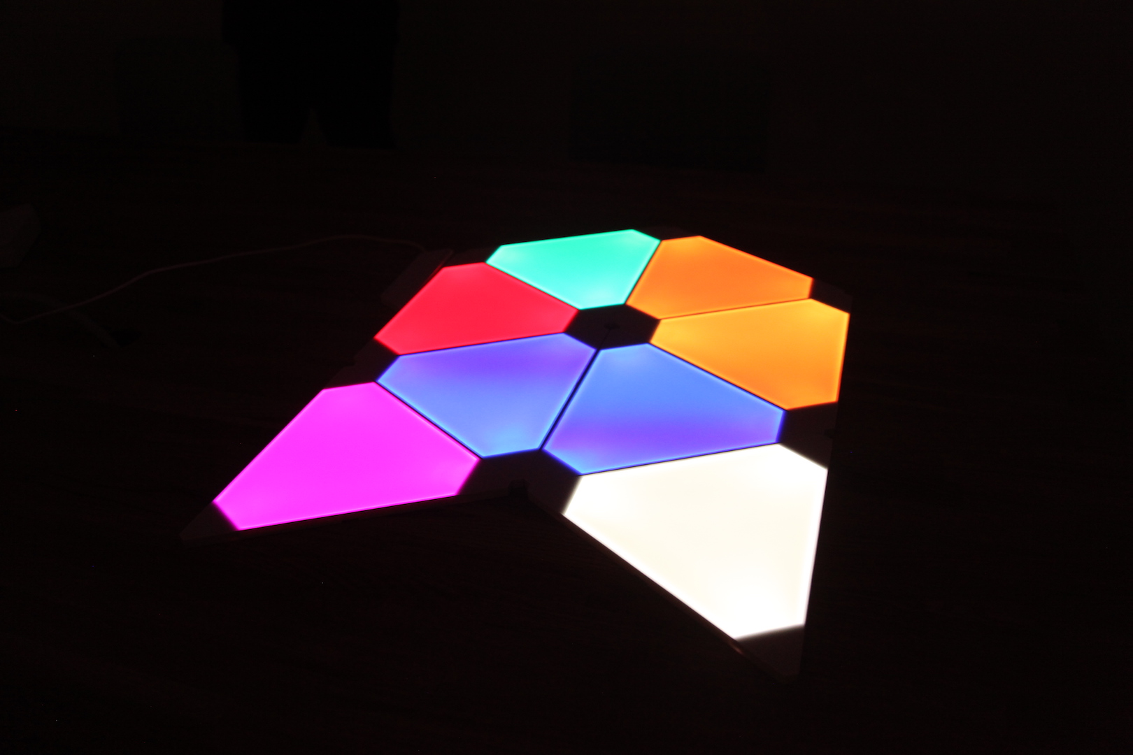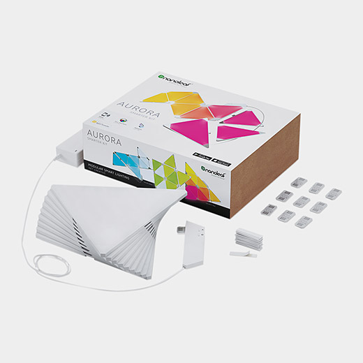 「オーロラライト(Aurora Light)」は、自由に組み合わせて壁や床に貼り付けて楽しめる照明。