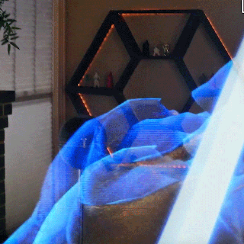 そのホログラムが、部屋の中を右に左に激しく動く!