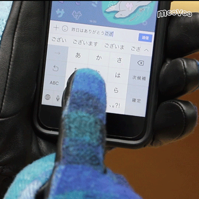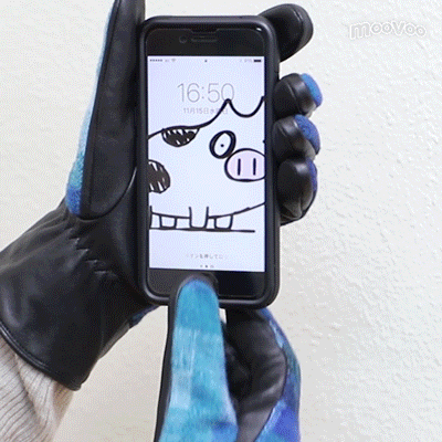 手袋の親指部分に、指紋に似た擬似文様が加工してあるので、iPhoneのTouch IDのような