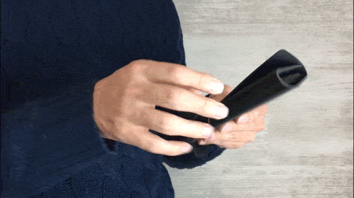 レザーを丸めた穴に指を通して持つことによって、片手でもブレずに大きな横画面でYouTubeなどの動画を楽しめます。