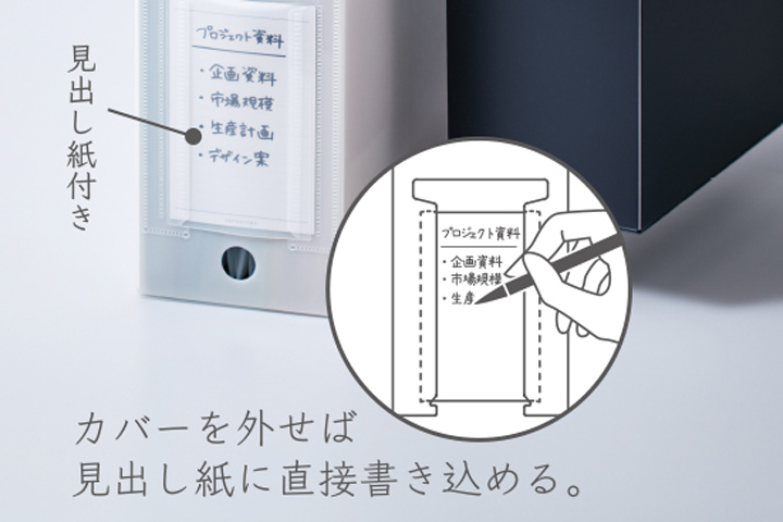 また下のスペースはカバーを外せば見出し紙に直接書き込みができるようになっています。