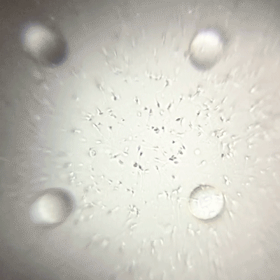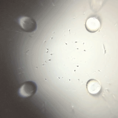 こんな動画が撮れます。レンズによって実際の300〜400倍の大きさで写しているそうです。