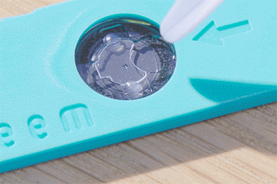 採取棒を使い、精液をレンズカバーのくぼみに密着させると、カバーの下に広がっていきます。