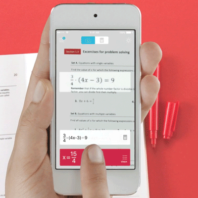 『PhotoMath』は学習の際にも活用できます。計算結果をタップすれば、そこに至る過程をスッテップ・バイ・ステップ形式で丁寧に表示。なぜ数式が解けたのかがひと目でわかります。