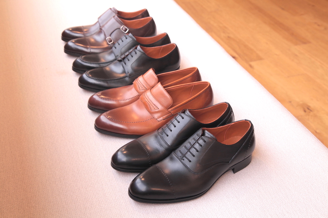 左から、ダブルモンク(M754S)、ストレートチップ(M752S)、ローファー(M756S)、Uチップ(M750S)の4種類を展開。