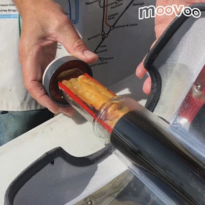食材用トレイに食材を入れて、そのまま真空チューブに差し込みます。