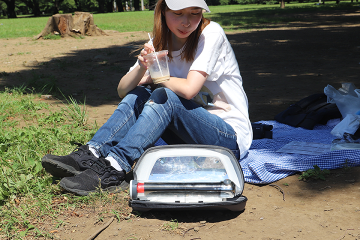 食材を円筒状の筒の中に入れて太陽の方へ向けておくだけで調理ができます。