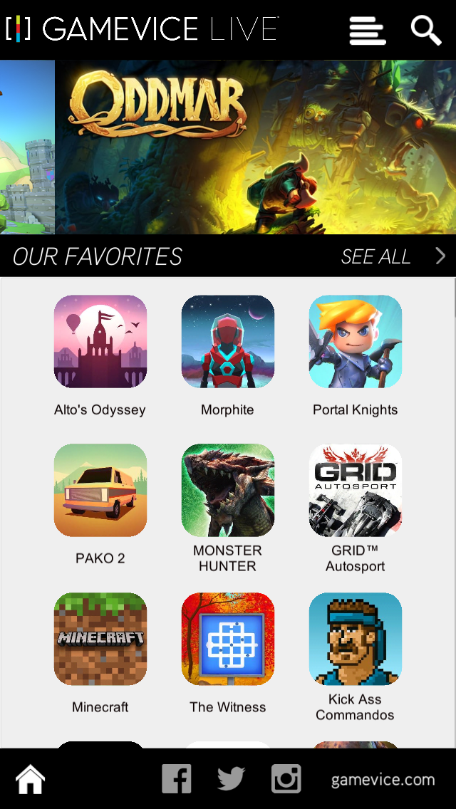 すぐに楽しめるGAMEVICE対応ゲームなどを確認することができます。