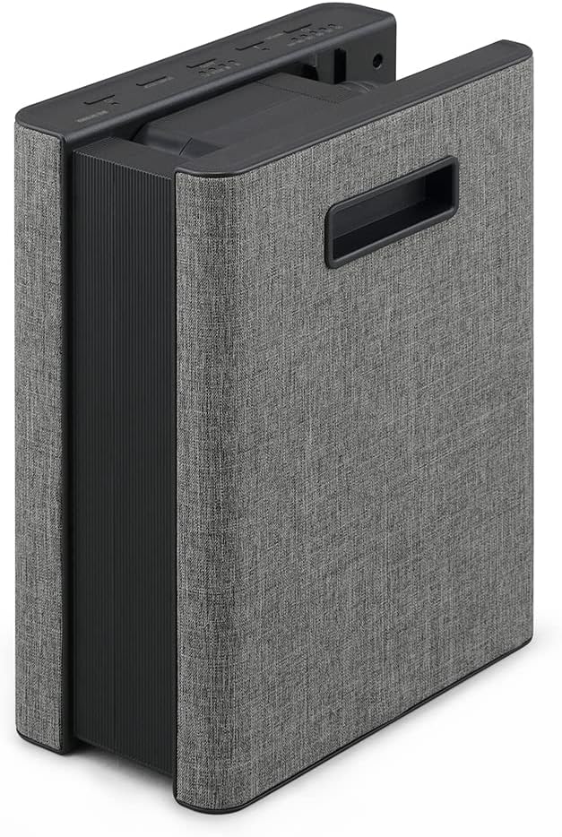 インテリアになじむ、ファブリックデザインの布団乾燥機です。場所移動に便利な持ち手を備えています。