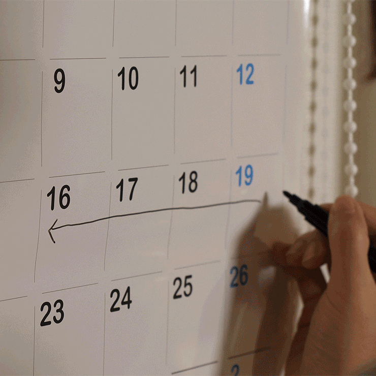 会社のミーティングの時にカレンダーを横に持ってくる。そうすると、その場でスケジュールを確認したり、書き直したりできます。
