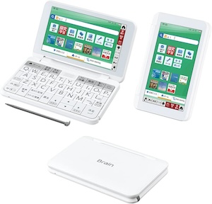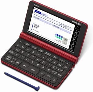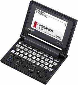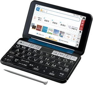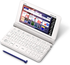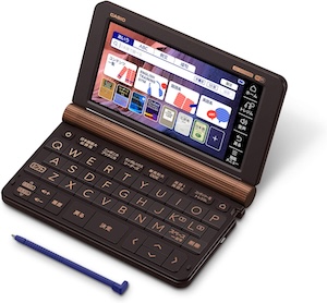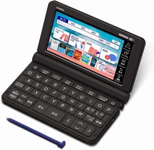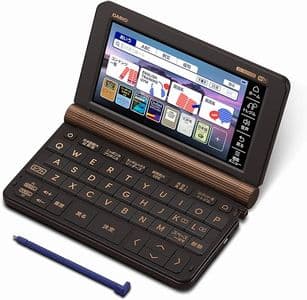 カシオの最上位機種にあたる、プロフェッショナルモデルです。おそらくほとんどの人にとっては、このモデルに入っている辞書を含むコンテンツはオーバースペックになるでしょう。電子辞書は、自分の英語力のアップに合わせて数年単位で買い替えていくのも良いのですが、あえて早めに最上位機種を買って「この投資をムダにしないために使い続ける!電子辞書を持つのにふさわしい自分になる!」と決めるのも良い方法です。英語学習に取り組むモチベーションが保てます。僕は10年前に買ったカシオのプロフェッショナルモデルを、今でも愛用しています。画面を開くたびに、ピリッと気持ちが引き締まる思いがします。カシオの電子辞書は乾電池式なので、バッテリー持ちが劣化することもなく、まだ現役で活躍しています。