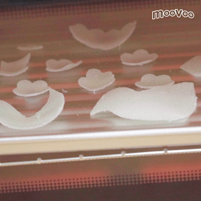 専用のカッターがついていて、薄くスライスしたお餅をすきな形にカットできます。お祭りの型抜きを思い出したりして、ついついはまっちゃう作業です。専用のカッターは、片側がまっすぐでもう片側がカーブ状のカッターなので色々な形にカットできます。クッキー型を使ってもキレイにできましたよ。
