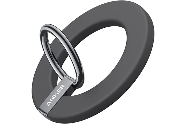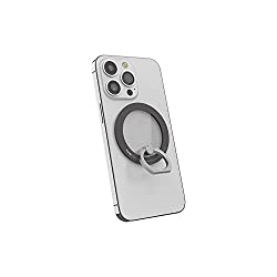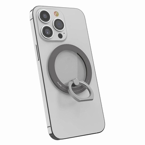 磁石の力でMagSafe対応のiPhoneやケースに装着でき、持ち方にあわせてバンド部分を使いやすい長さに調節できるスマホリング。