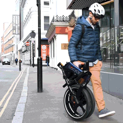 Gocycle GXは前輪のハブ部分にモーターを搭載した、電動折りたたみ自転車。電動自転車としては時速約40kmでの移動が可能で、さらに最大65kmの巡航距離を実現しています。