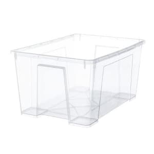 透明なプラスチック収納ボックス「SAMLA サムラ」は、小さなものから130L入る大容量のサイズまで展開しています。