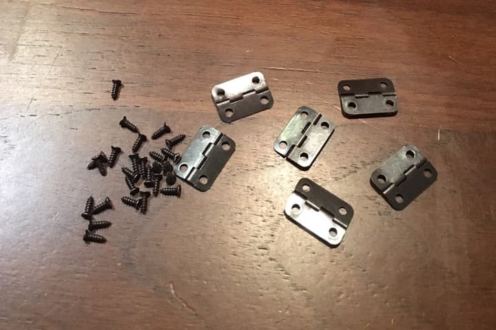 蝶番と留め金を袋から出し取り付けていきます。