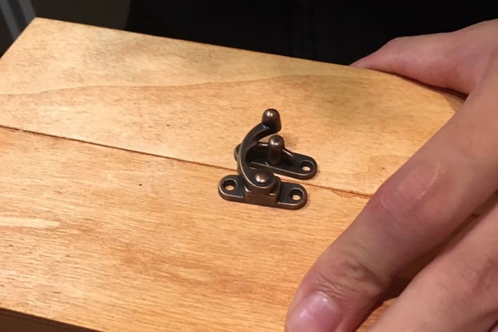蝶番を止めたら反対側に留め金をつけましょう。こちらもずれないように注意して取り付けましょう。