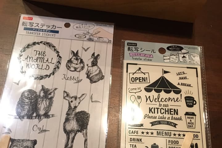 100均アイテムの中で人気のある転写シールを使って、アレンジしていきます。