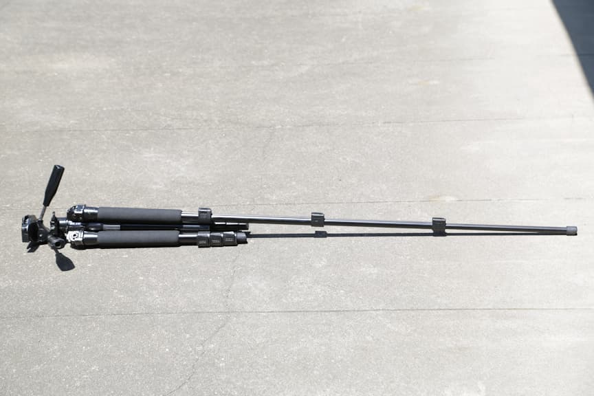 せっかく持って行っても高さが足りなかった等ということにならないために、三脚を伸ばして高さを確認してみましょう。