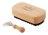 • 猪毛とビーチウッドを採用した商品。凸凹に植毛されたブラシの毛先はT字に加工されていて、毛玉を楽に絡め取ります。少ない回数のブラッシングで、お気に入りの衣類をケアできて便利です。