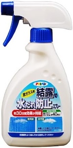 • 吹きかけたあとに、拭き取るタイプのスプレー。窓ガラスの表面に撥水効果をあたえます。