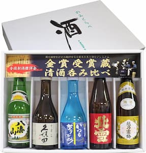 新潟県のおいしい日本酒が飲んでみたい方には、この「金賞受賞酒蔵 飲み比べセット」がおすすめです。Amazonの日本酒飲み比べセットでランキング1位(2019年8月9日時点)に輝いたこの商品には、全国で高品質の清酒を選定する「新酒鑑評会」で金賞の新潟県の辛口が5種類含まれています。八海山や菊水、越乃寒梅など、一度は名前を聞いたことのある有名なブランドばかりです。