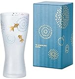 氷の結晶を砕いたような表面に描かれた花火と金魚の絵柄がなんとも涼やかなアデリアのコップ。ビールはもちろん、冷酒やチューハイ、ソフトドリンクなどとも相性抜群で、様々なシーンで活用することができます。食卓を華やかにしてくれるデザインなので、家飲みグラスとして最適な使い勝手抜群のコップです。