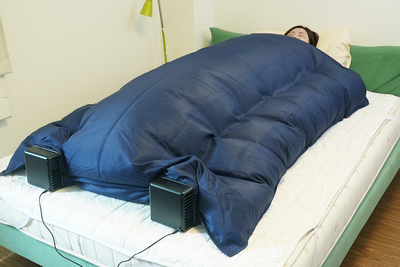 冬は麺を肩や身体に巻き付かせることで、毛布を一枚掛けるだけで、通常の掛け布団よりも暖かくなります。
