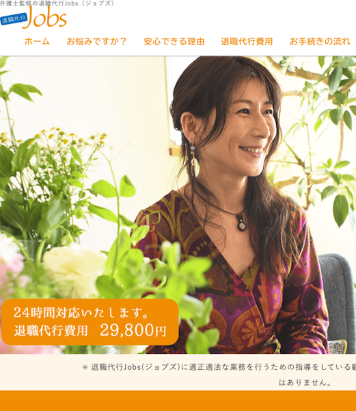 弁護士監修の安心感に定評がある退職代行サービス「Jobs」。24時間365日、即時対応可能なJobsは、辞めたくても辞められない状況に悩んでいる方におすすめの退職代行です。申し込みをすれば、「退職届テンプレート」「業務引継書テンプレート」「顧問弁護士 西前啓子さんのwebセミナー」「無料カウンセリング」などの特典が付いてきます。また、退職を実現できなかった場合、全額返金の保証も付いているため、安心して利用できる点が魅力のサービスと言えるでしょう。