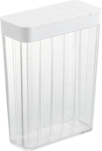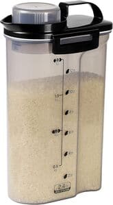 冷蔵庫で保存するために作られたコンパクトサイズの米びつで、庫内のスペースを有効活用できます。本体は持ちやすい形状でフタが計量カップにもなり、実用性に優れています。