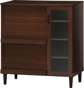 引き戸タイプのキャビネットとは、ふすまのように扉が引き違い式になっている収納家具のこと。両開きタイプと違って扉開閉のスペースが要らず、狭い場所でも有効利用できます。