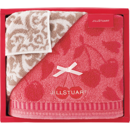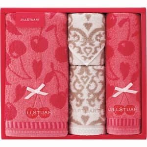 フェミニンな洋服やコスメを取り扱い、女性から人気を集めているブランドのバスタオル・ハンカチ2枚セット。かわいらしいデザインが目を引きます。