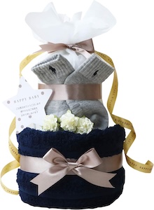 ママに喜ばれる!靴下とタオル付きのおむつケーキ