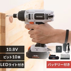アイリスオーヤマの「充電式インパクトドライバ JID80」は、日曜大工には十分な性能をリーズナブルな価格で入手できるインパクトドライバーです。10.8Vで最大締付トルク80N・m、回転数は0~2,000/m、打撃数は0~3500/mとなっています。