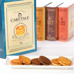 • CAKE TALEはケーキをモチーフにした焼き菓子のブランド。メープルパンケーキ・チョコレートパンケーキ・キャラメルパンケーキをイメージした3種類のラングドシャ各4枚入りです。