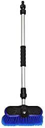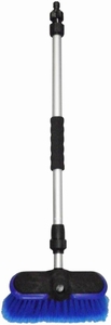 通水タイプで、水量を手元で調節できる便利なアイテム。ブラシの毛は先割れタイプで甲はシリコンゴム付きのため、キズが付きにくいのが特長です。窓や車の掃除に重宝します。二段伸縮する柄は、約70~110cmのあいだで長さを変えられて便利です。