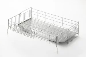 洗った食器の水を切るのに使用する、水切りかご。プラスチックや金属で作られた浅いかごの形状で、さまざまなサイズや形状をしたものがあります。