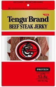 • ビーフジャーキーで有名な、テングブランドの国内製造品。厳選された赤身ももステーキ肉を乾燥させ、約1/3まで凝縮しています。