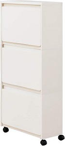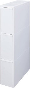 すっきりとしたデザインの薄型3段ボックスタイプ。生活感が出にくい、シンプルな見た目です。