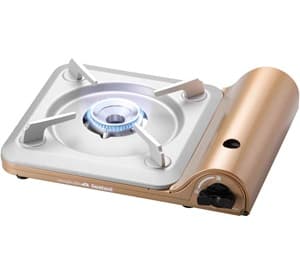 キャンプシーンで活躍、風に強いカセットコンロ |