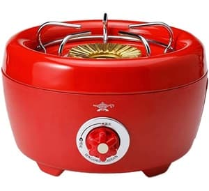 火鉢と七輪がモチーフ、丸いフォルムのカセットコンロ |