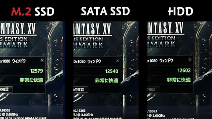 最後にそのまま「ファイナルファンタジーXVベンチマーク」を実行してみました。何か差が出るかなと思いましたが、ゲームの快適さはCPUやグラフィック性能が左右するため、スコアに違いは出ませんでした。