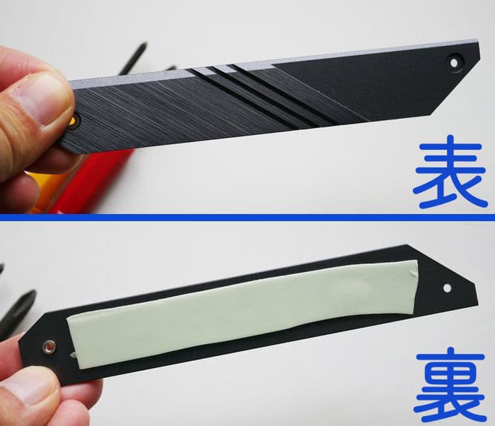 写真は一例ですが、ヒートシンクは細長い形状で、裏側に放熱素材がついています。マザーボードに取り付けたM.2 SSDの上にかぶせて、両端をねじで固定します。