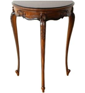 量産の家具は、色や素材の違いで個性を出すことが多い傾向です。カラフルに色を塗ったり、アイアンや石、クリアな素材を脚に使ったりして違いを出しています。また木製脚の場合も、現代の大量生産の体制ではまっすぐなストレート脚しか加工できないため、ほとんどが同じ形に見えてしまいます。一方で、アンティークのコンソールテーブルは大量生産では造り出せない良さがあります。現代では手に入れることができないような高級木を使って造られているものが多いのもアンティークの魅力です。ぜひ、取り入れやすいコンソールテーブルからアンティーク生活をはじめてみて欲しいと思います。