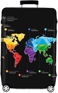 旅行気分を高めてくれる世界地図柄のスーツケースカバー。モノトーンカラーが土台となっているため、落ち着いた印象もあり、ビジネスシーンでも違和感がありません。添乗員時代に使ってみたかったなあと思えるカバーです。