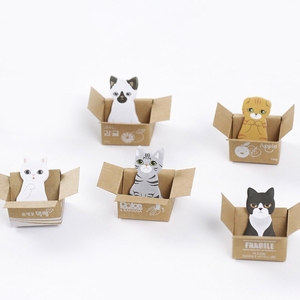 ダンボールに入った猫の付箋。ちょこんと座る姿が可愛く、猫好きにはたまりませんね!ダンボール部分が組み立て式なのも楽しい。