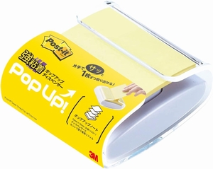 ポップアップタイプは、ブロックタイプをディスペンサーに収めたもの。付箋がボックスティッシュのようにつづら折りにつながっているので、1枚取り出すと次の1枚が飛び出してくるタイプ仕様です。
