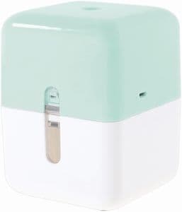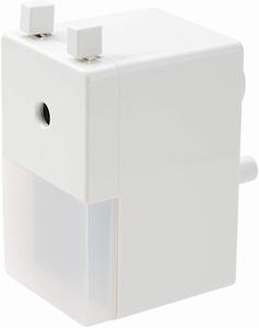 • 背部にハンドルが付いた、手動式の鉛筆削り。軽い力で削れ、削りカスは前から取り出すタイプです。