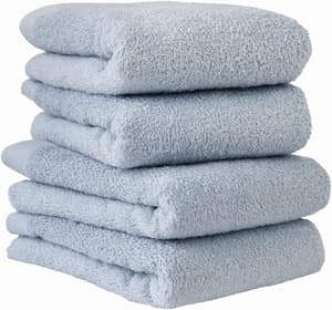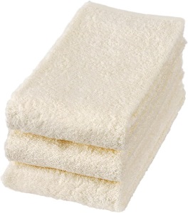 カラーは白のみですが、その分コスパで勝負するLittle Budding「軽くて乾きやすい綿100%白いフェイスタオル20枚組 業務用160匁」です。160匁(もんめ)とは重さの単位で1匁が約3.75g。商品説明に記される匁は1枚でなく1ダース(12枚)の重さです。本商品は160匁=600gで、1枚あたり50gとなります。タオル業界では匁が慣習的に使われていることもあるので、知っておくとちょっと便利です。
